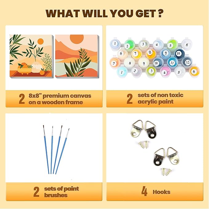 2 Pack Framed Paint by Number for Kids Ages 8-12,Boho Acrylic Paint by Number Kits on Canvas,Perfect for Adults Beginners and Home Wall Decor (8x8inch)