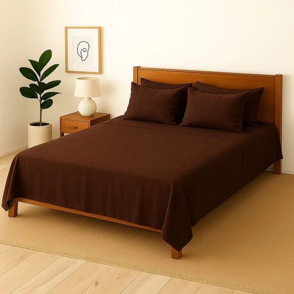 BROWN PLAIN- Bedsheet With 4 Pillow Covers