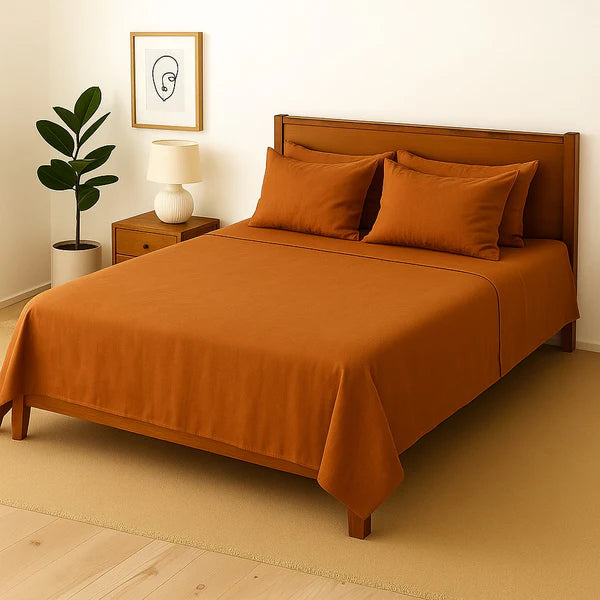COPPER PLAIN- Bedsheet With 4 Pillow Covers
