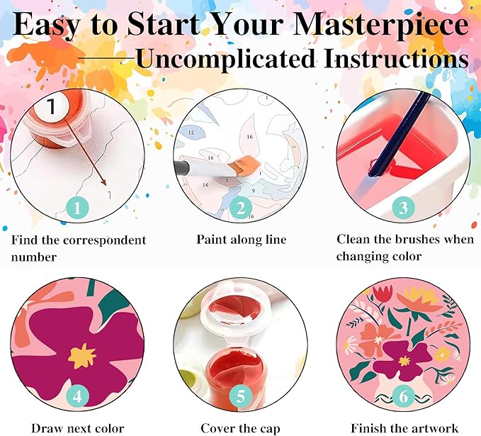 Each 8x8 inch canvas is pre-framed and numbered for convenience, while the included high-quality acrylic paints and precision brushes make the process smooth and satisfying. Ideal for relaxing weekend projects or gifting to creative friends and family, this DIY kit adds a personal touch to your home, office, or studio wall decor.