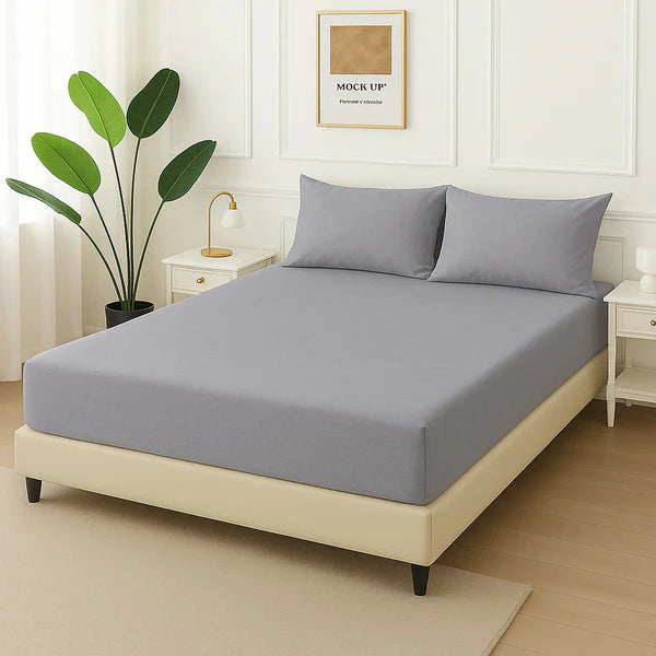 GREY PLAIN- Fitted Bedsheet Set