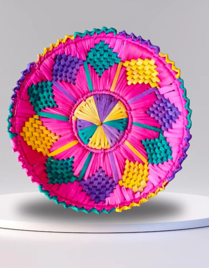 Bring a burst of color to your space with this stunning handwoven basket crafted from natural palm leaves.