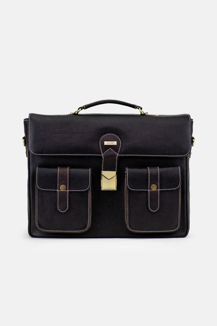Exude old school charm with this vintage classic laptop bag by JULKÉ. Designed with multiple pockets and a solid combination lock to keep everything safe, organized, and classy. Made in original cow leather that will stay with you for longer.